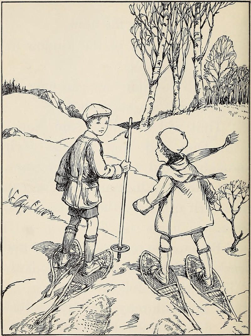 #vintage illustration #snow #1930s #illustration #snowshoes #tracks
