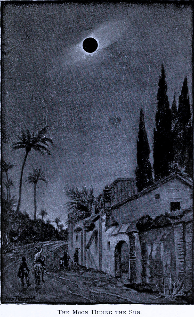 An illustration from an 1899 issue of Century Illustrated magazine. The caption reads: "The demons devouring the sun."