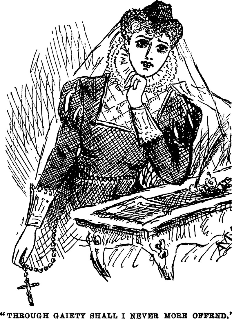 "Through gaiety shall I never more offend," from Home-Theatricals Made Easy, or, Busy, Happy, and Merry by Frances Elizabeth Callow, 1891.