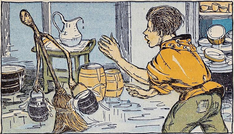 #vintage illustration #broomstick #fairy tale #1920s #illustration #sorcerer's apprentice #magic broom