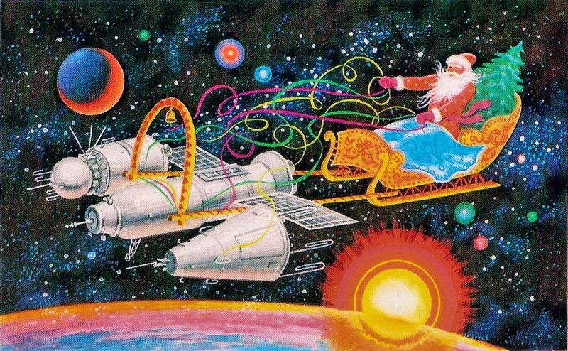 #vintage christmas #christmas #santa #satellite #soviet art #space age