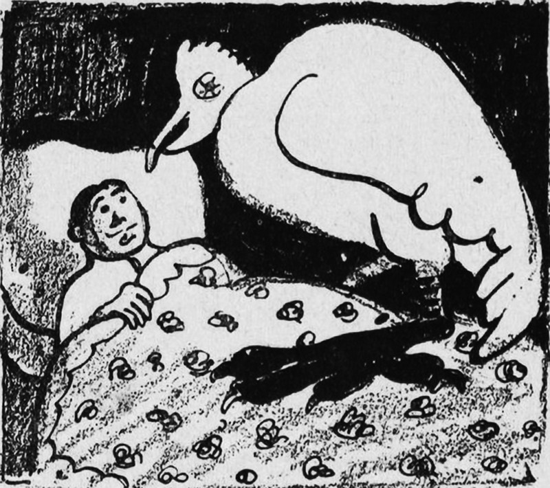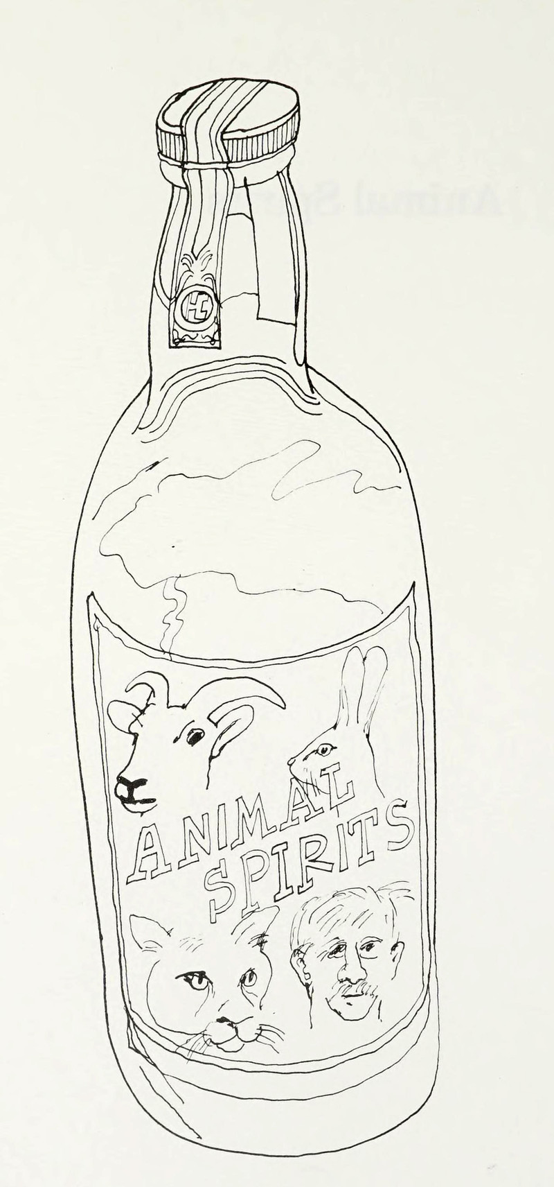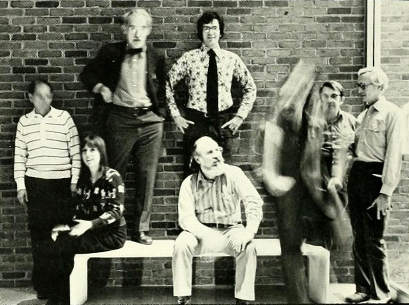 The blurred figure on the right had a lion cub-like spirit animal on his shoulder (see the enlargement, and a non-blurred photo of the man showing his shoulder without spirit animal present). From Virginia Commonwealth University's 1973 yearbook.