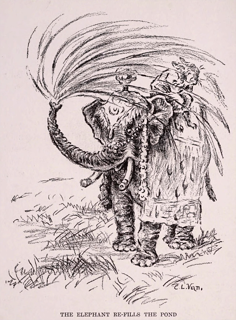 #vintage illustration #elephant #spraying water