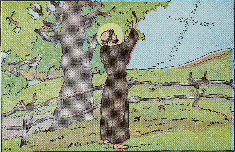 #vintage illustration #monk #saint #halo #illustration #st. francis #saint francis