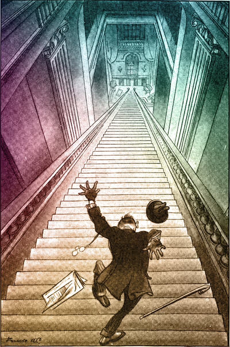 #vintage illustration #fear #staircase #night #stairway #afraid #illustration #steps #stairs