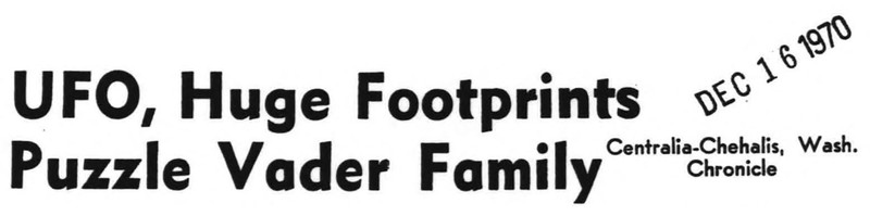Wookie tracks (like Bigfoot) and flying saucers perplex the Vaders, years before the debut of Star Wars. From UFO Newsclipping Service, 1971.