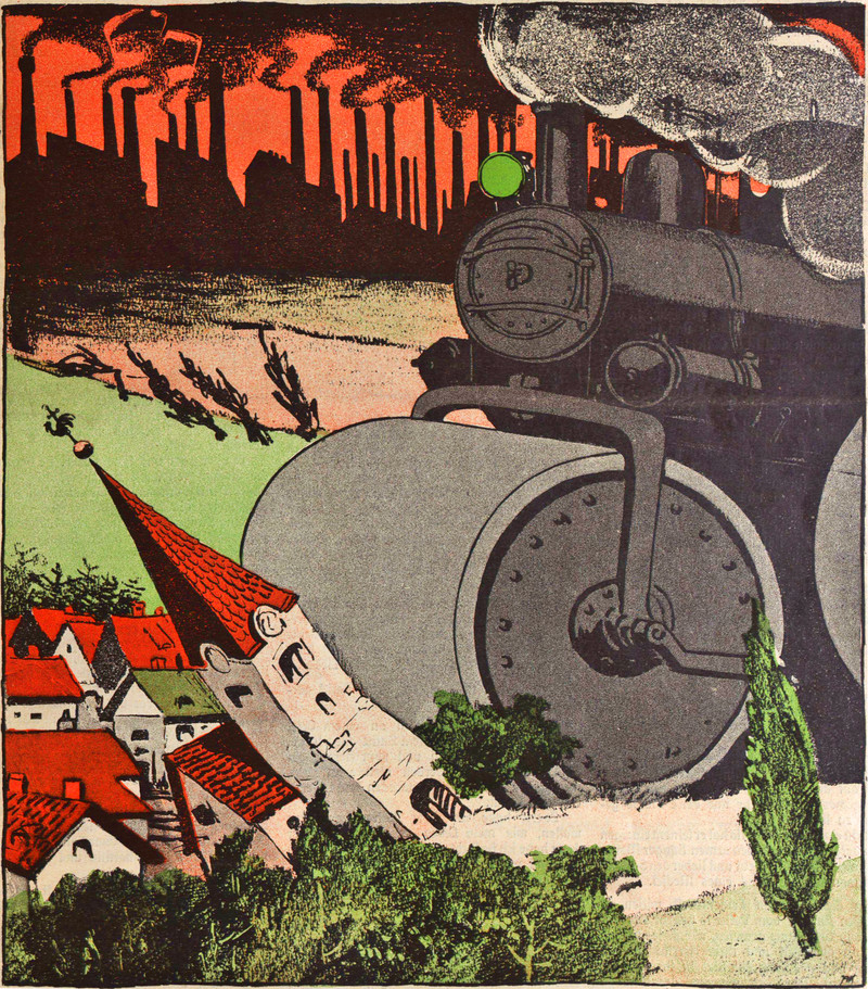 The giant and the steamroller, from A Book of Giants, written and engraved by William Strang, 1898.