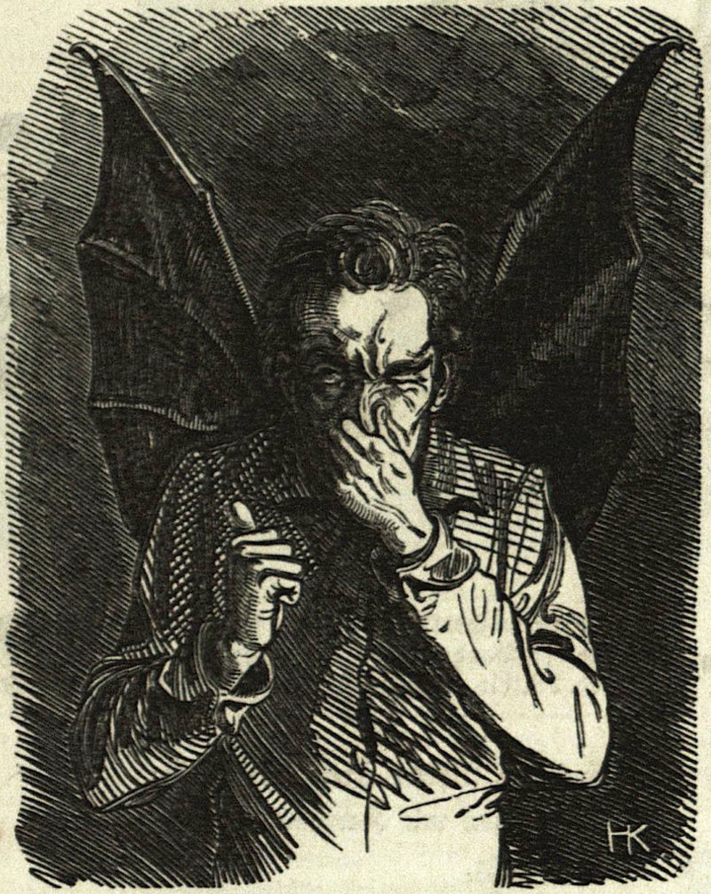 #vintage illustration #demon #winged man #bad smell #stinky