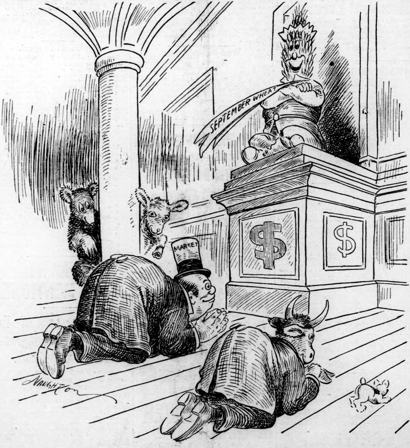 #religion #vintage illustration #political cartoon #idol #deity #wheat #stock market