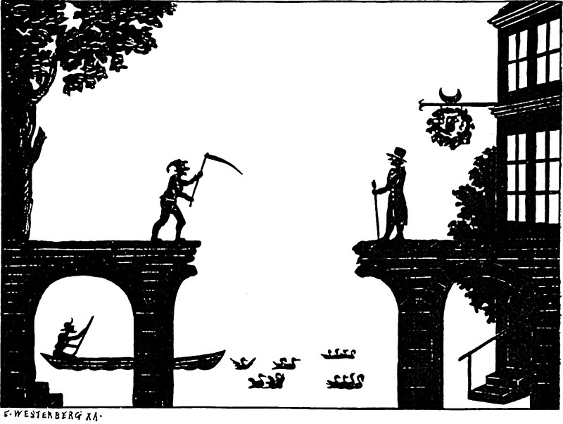 #vintage illustration #silhouette #scythe #bridge #stockholm #illustration