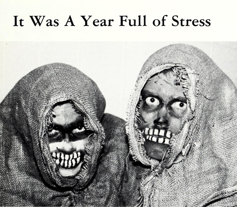 We've endured some fairly stressful English teachers, so this headline rings true. "Humanity stressed by English faculty." From Charleston Southern's 1972 yearbook.