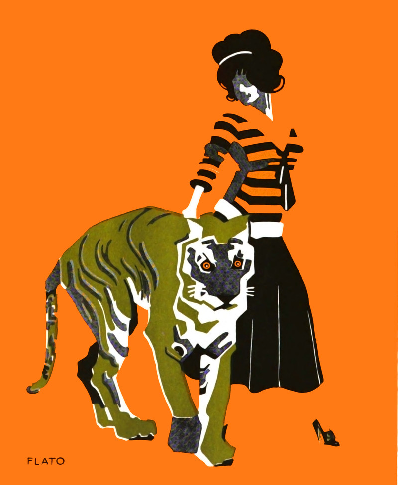 #vintage illustration #tiger #orange #pet walker #stripes