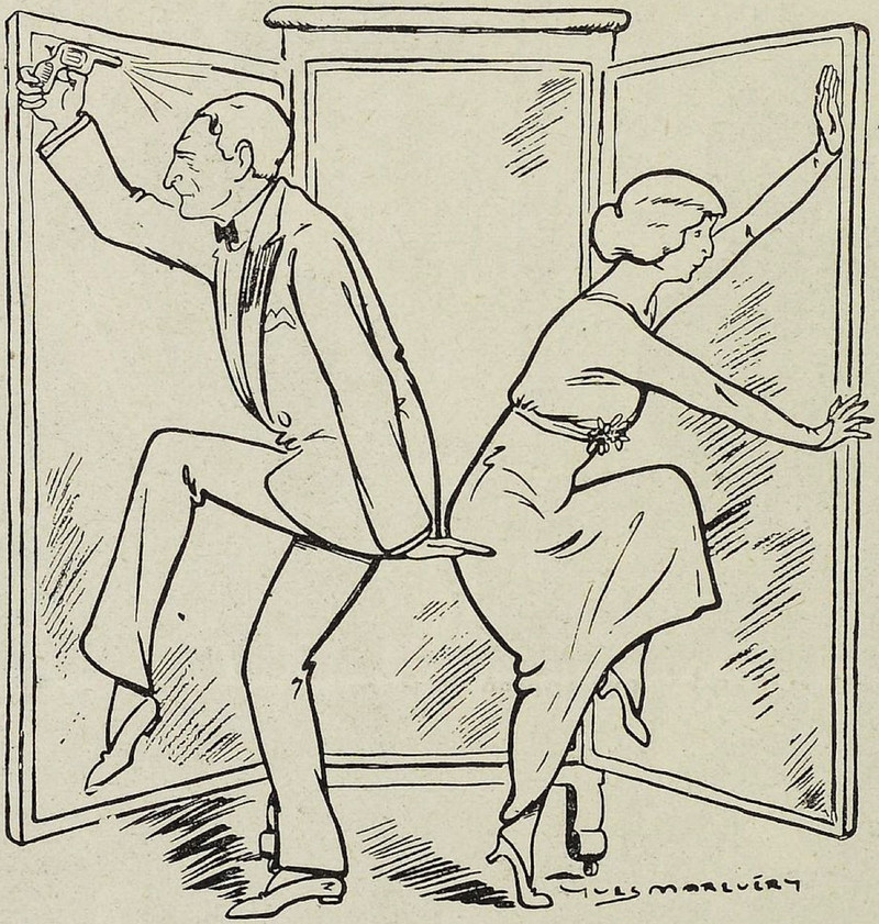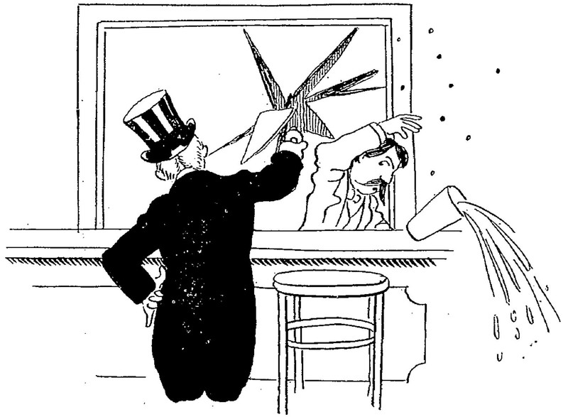 At first glance we thought the gentleman was holding up an enormous paper crane that surprised the bartender. Reblog if you've ever mistaken something for giant origami. From Le Journal Amusant, 1905.