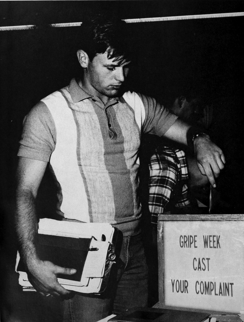 "Gripe week.  Cast your complaint."  From Oklahoma State University's 1966 yearbook.