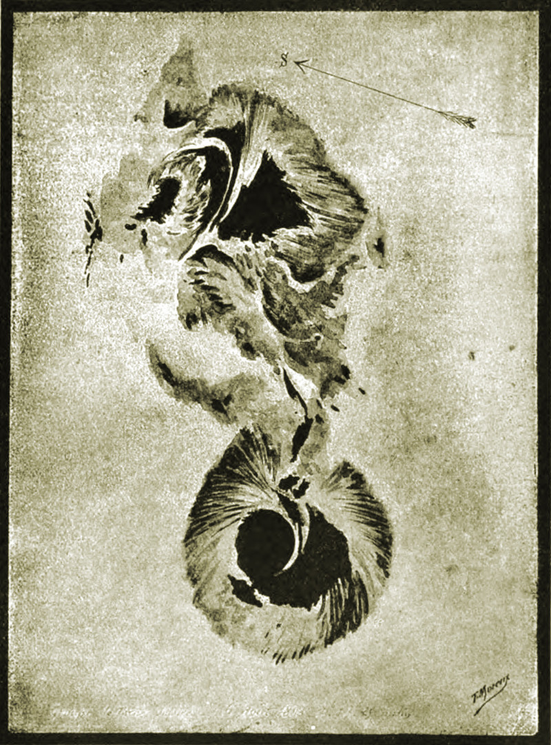 Here's a drawing of a sun spot, by M. Moreau at Bourges, reproduced in Cassell's, 1894.