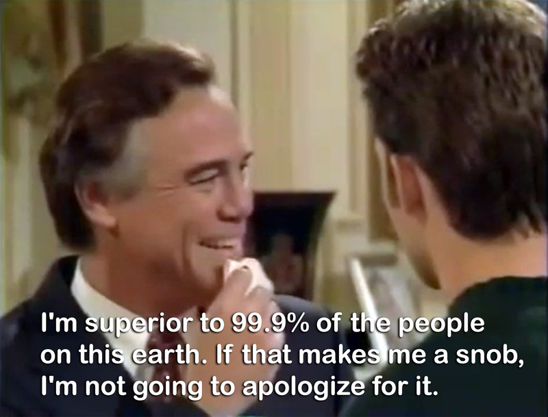 "I'm superior to 99.9% of the people on this earth. If that makes me a snob, I'm not going to apologize for it." From Passions, ep. 83.