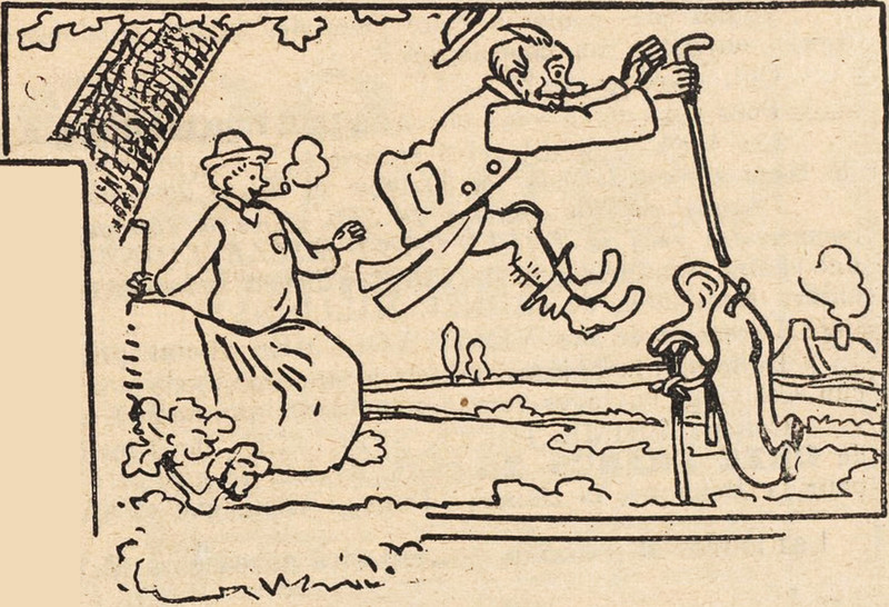 Here's a precursor to Sushi Ramen Riku jumping into his clothes.  From L'Album Comique de la Famille, 1902.