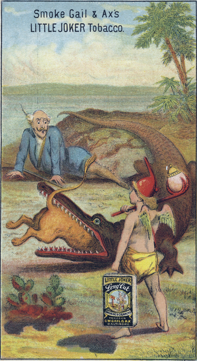 #vintage illustration #vintage ad #alligator #trickster #swallowed alive #illustration #ad