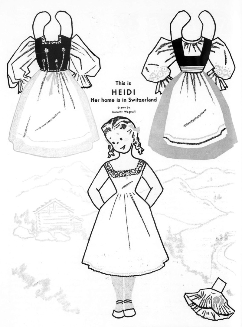 #vintage illustration #1940s #illustration #paper doll #swiss #heidi