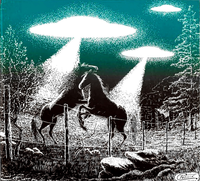 #vintage illustration #ufo #horse #levitation #weightless #taken up