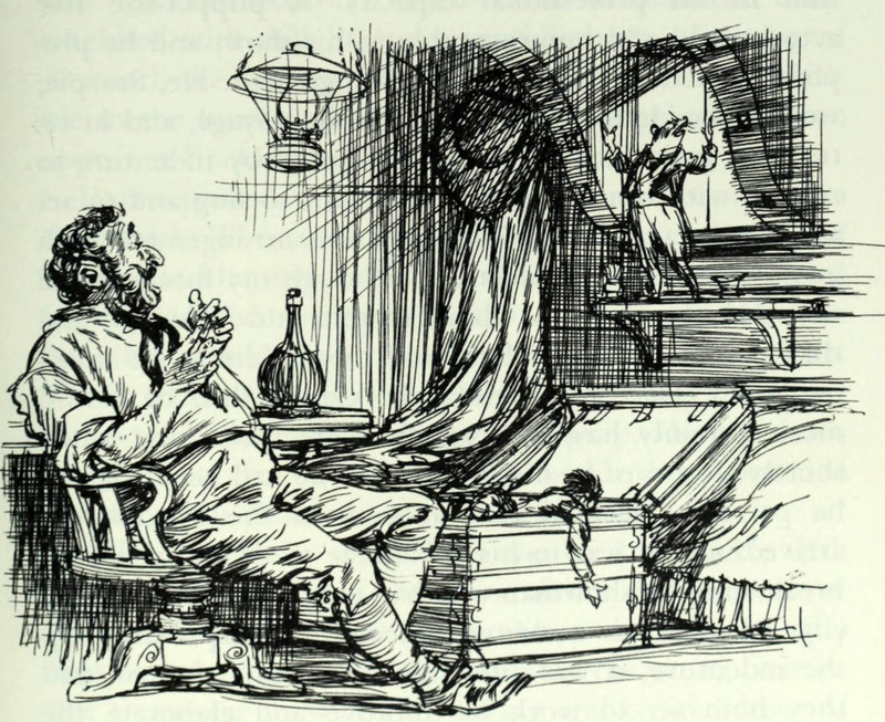 Even the paintings don't like the cat music. From Lustige Blätter, 1917. If you, too, would like to make others run away screaming, see How to Be Your Own Cat.