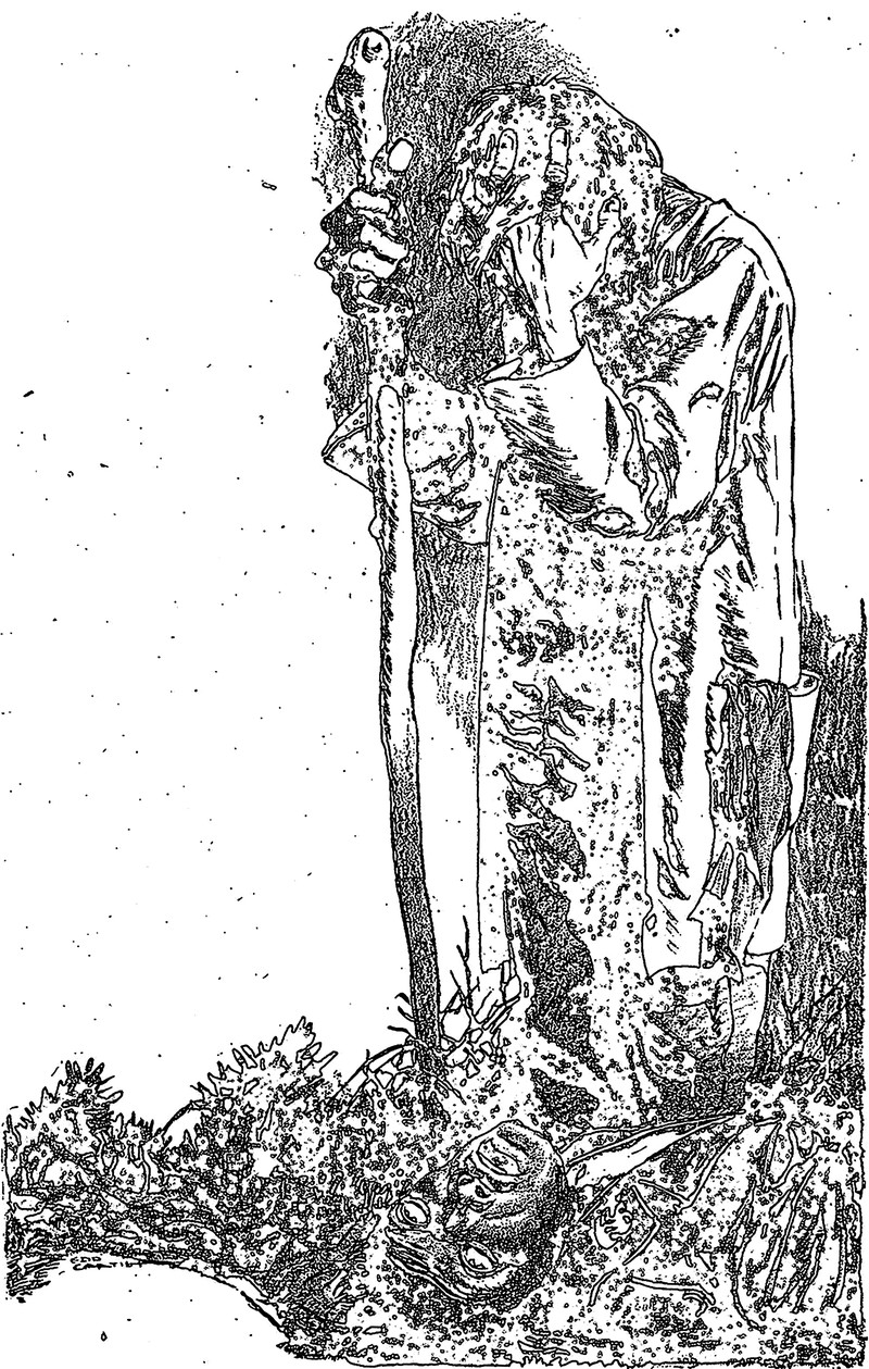 #vintage illustration #despair #depression #hermit #hooded figure #1940s #worried #tarot hermit