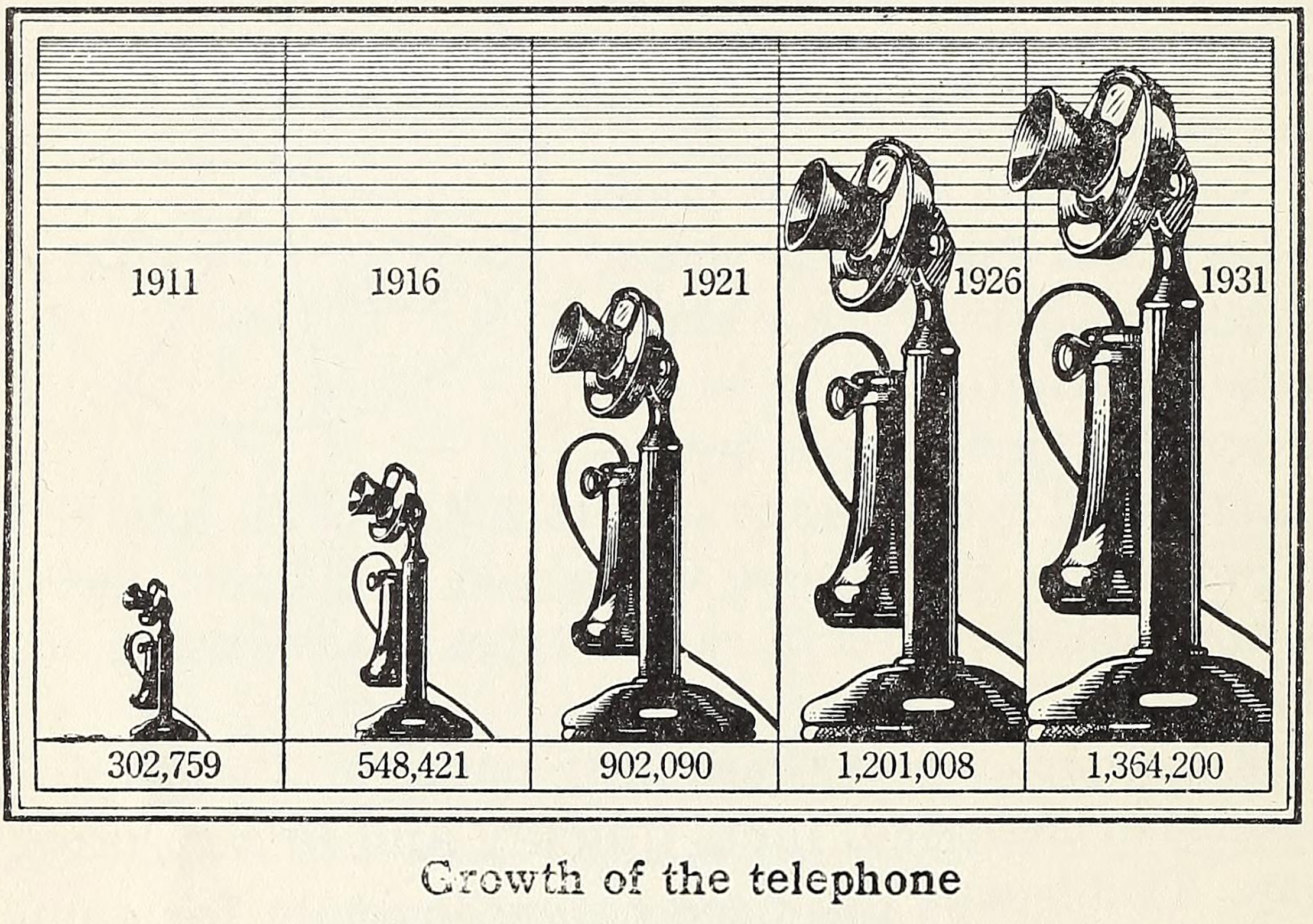 "Why should you not talk about secrets over the telephone?" From Sharing Experiences by McKee & McCowen and illustrated by Corinne Malvern & Sylvia Haggander, 1947.