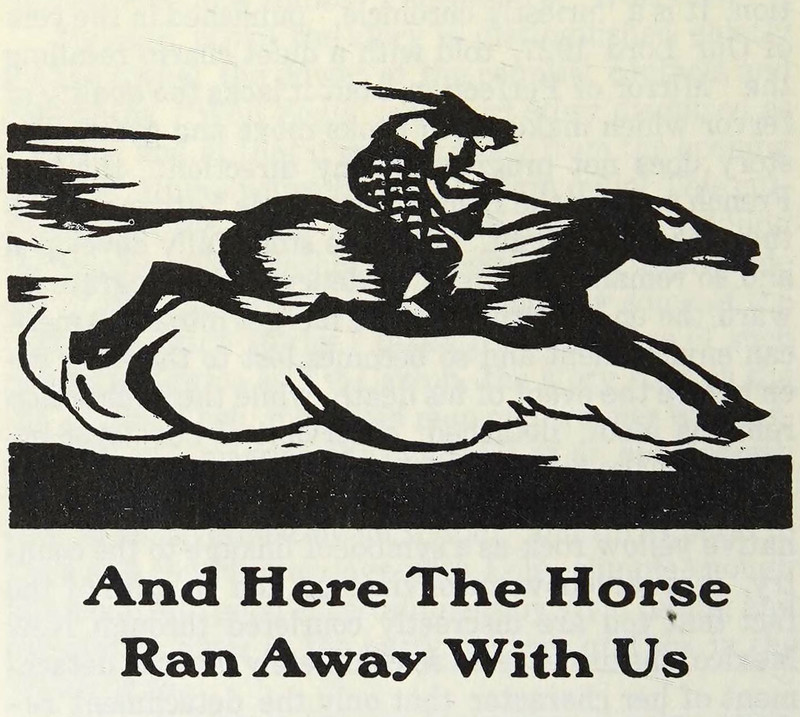 "And here the horse ran away with us."  From Laughing Horse, 1927.