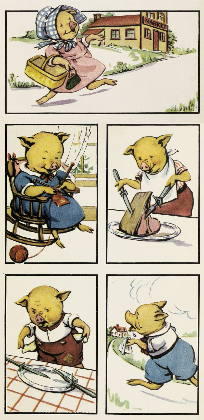 #vintage illustration #anthropomorphism #pig #1940s #illustration #this little piggie