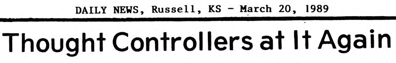 News we can believe -- "Thought controllers at it again."  From UFO Newsclipping Service, 1989.