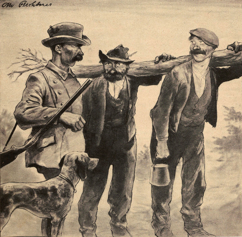 The figure in the middle has apparently completed the first several steps toward How to Be Your Own Cat.  Can you tell?  From Fliegende Blätter, 1926.