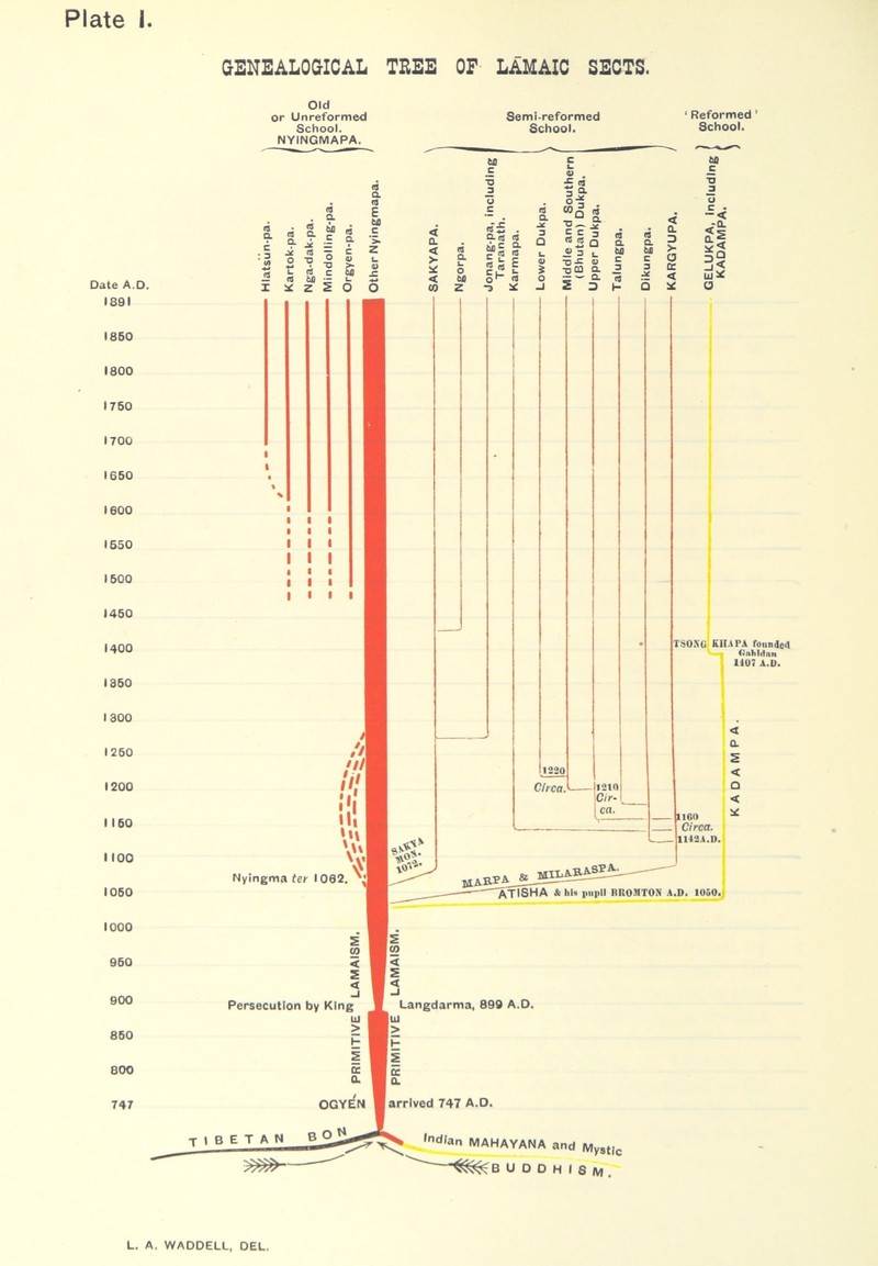 Genealogical tree of Lamaic sects, fromĀ The Gazetteer of Sikhim, 1894.