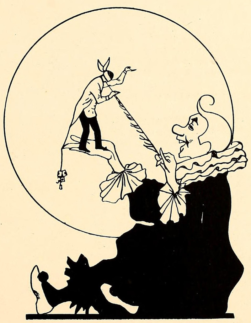 #vintage illustration #clown #vintage yearbook #feather #yearbook #tiny man #tickling #illustration