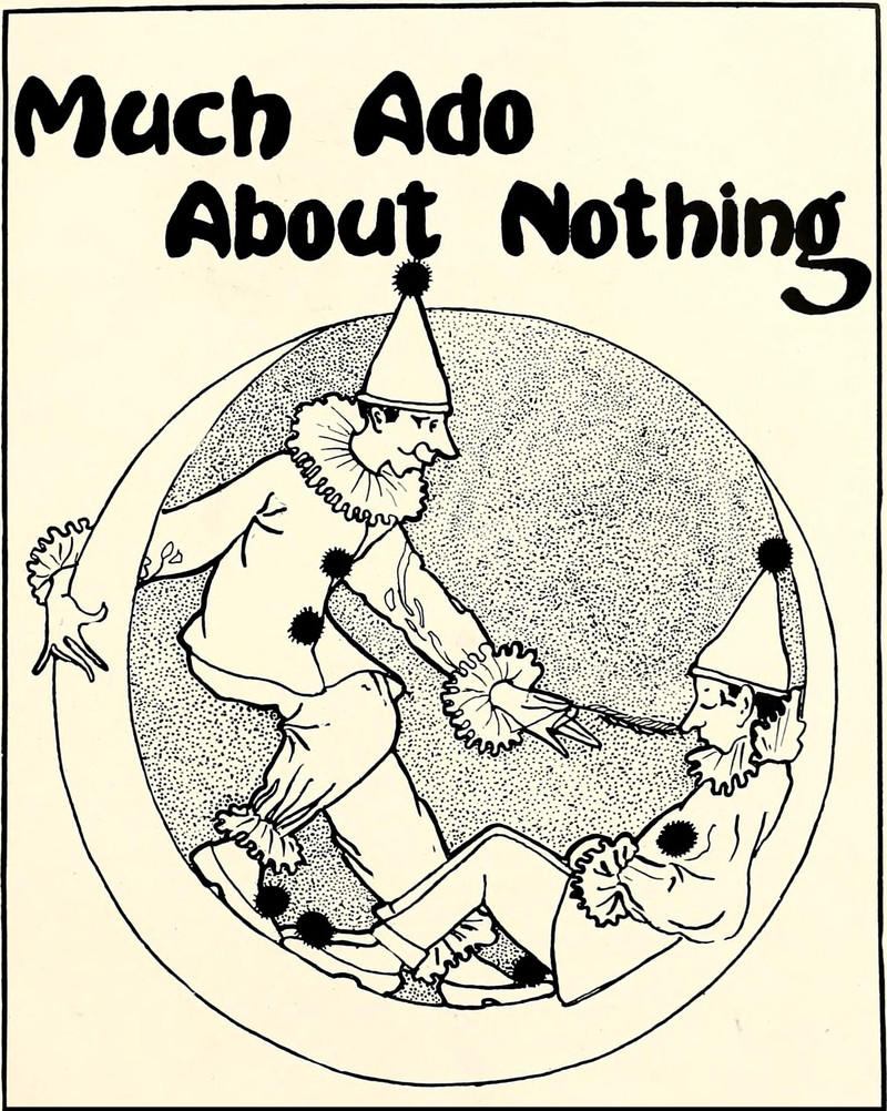 #vintage illustration #shakespeare #clown #vintage yearbook #feather #yearbook #tickling #much ado #illustration