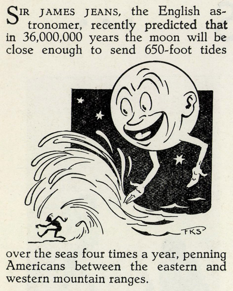 #vintage illustration #moon #man in the moon #faces in things #1930s #illustration #tidal wave #tide