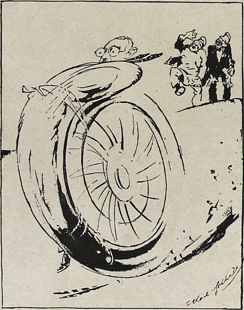 #vintage illustration #tied down #tied to a wheel #rolling #out of control