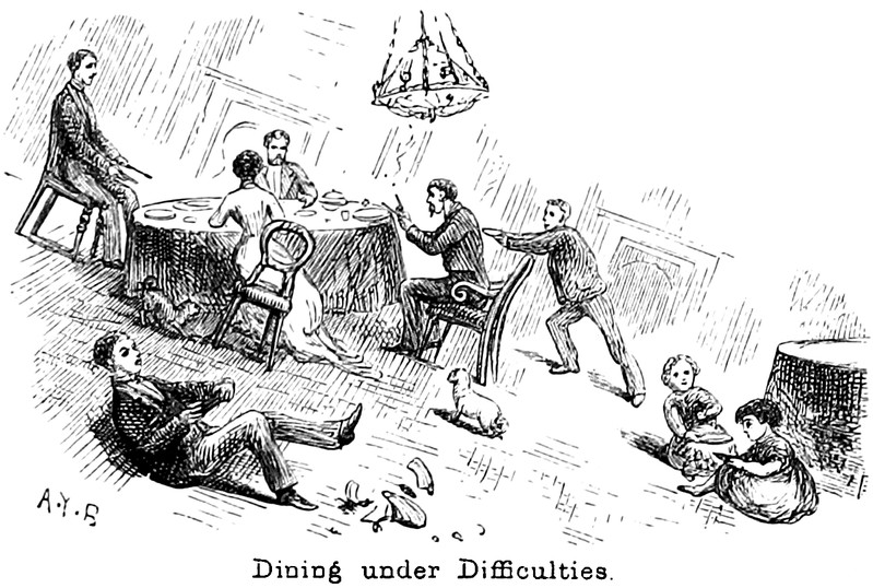 "Dining under difficulties," from Sunshine and Storm in the East by Annie Brassey, 1881.