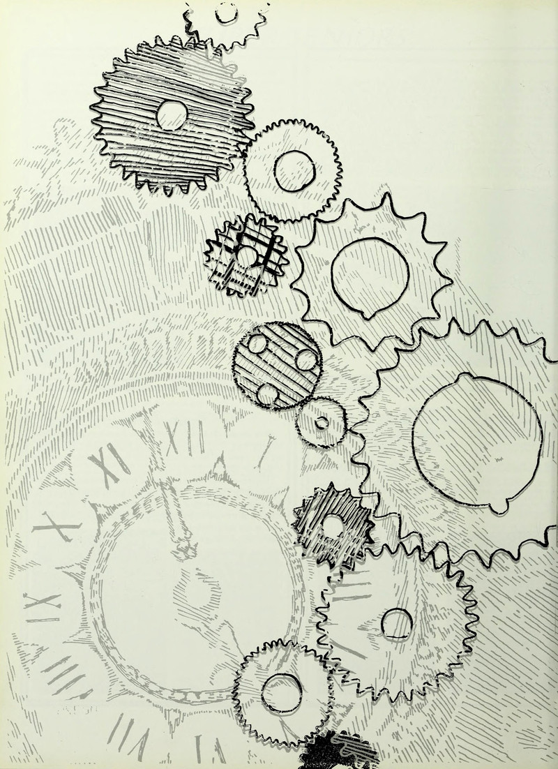 #vintage illustration #clockwork #time #vintage yearbook #yearbook #clock #illustration #1990s