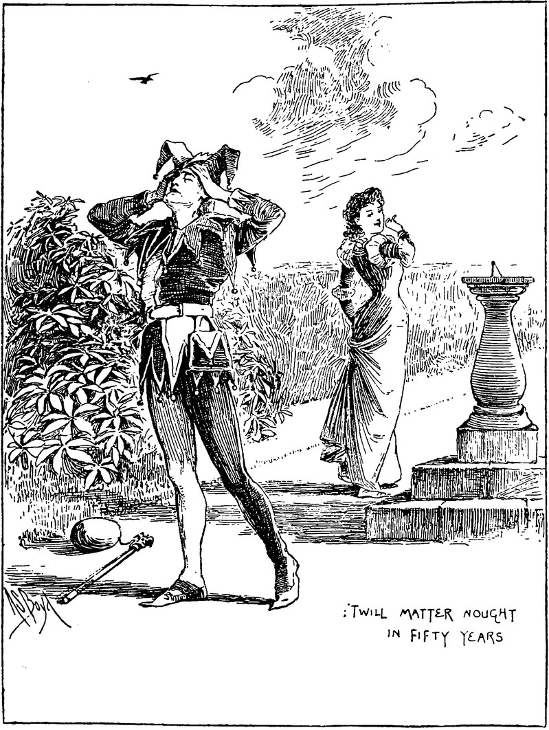 "Twill matter nought in fifty years."  Surely she jests (too)?  From The Ballad of a Jester and Other Poems by J. Redfearn Williamson, 1891.