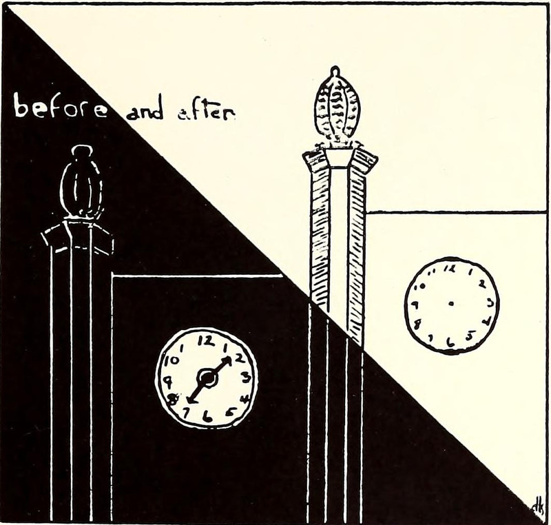 #vintage illustration #vintage yearbook #yearbook #clock #before and after #1930s #timeless