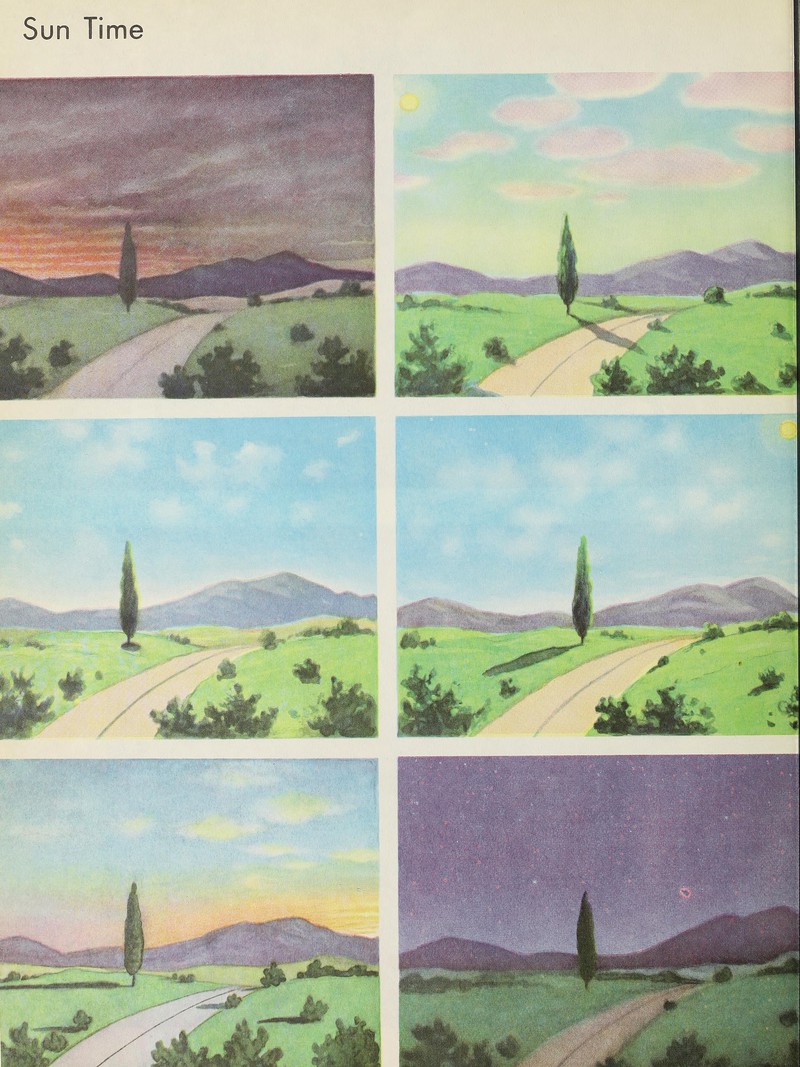 #vintage illustration #1940s #illustration #times of day #sky