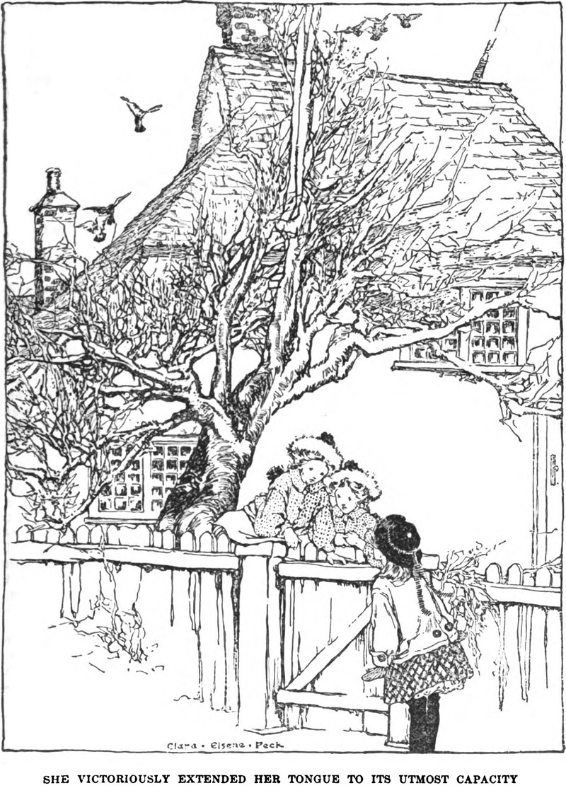 "She victoriously extended her tongue to its utmost capacity," from Pearson's, 1911.