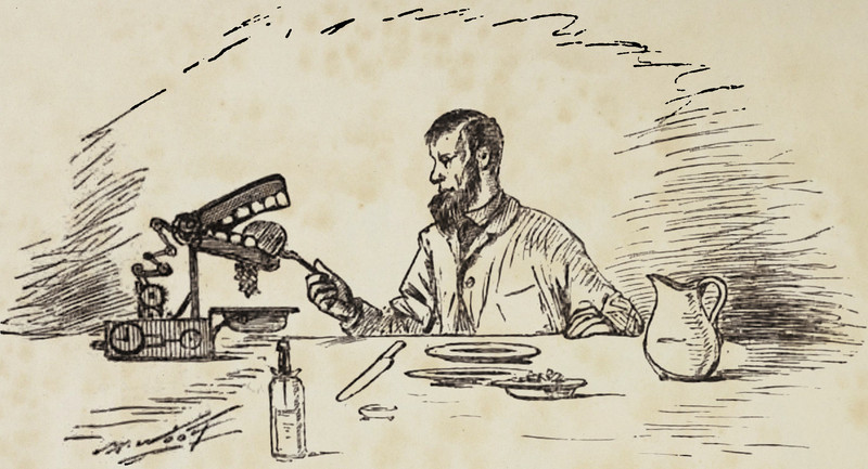 #vintage illustration #chattering teeth #false teeth #tough meat #illustration #chewing machine #1880s