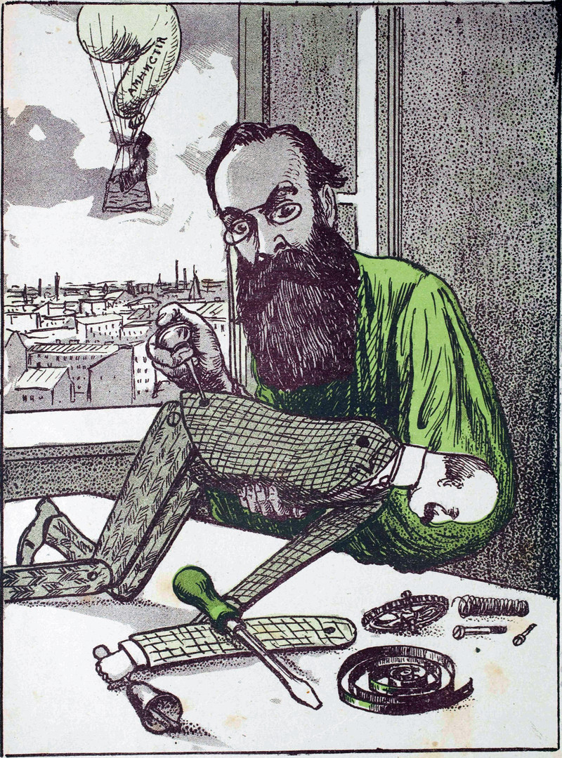 #vintage illustration #beard #automaton #mechanical man #toy maker