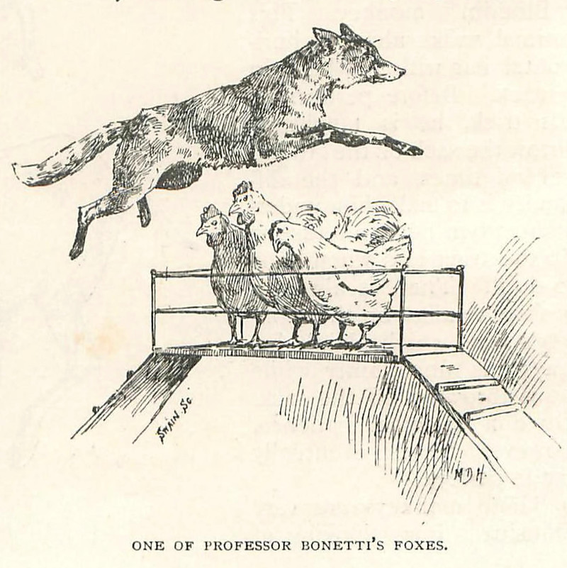 #vintage illustration #fox #circus #chicken #1890s #hen #illustration #trained animal