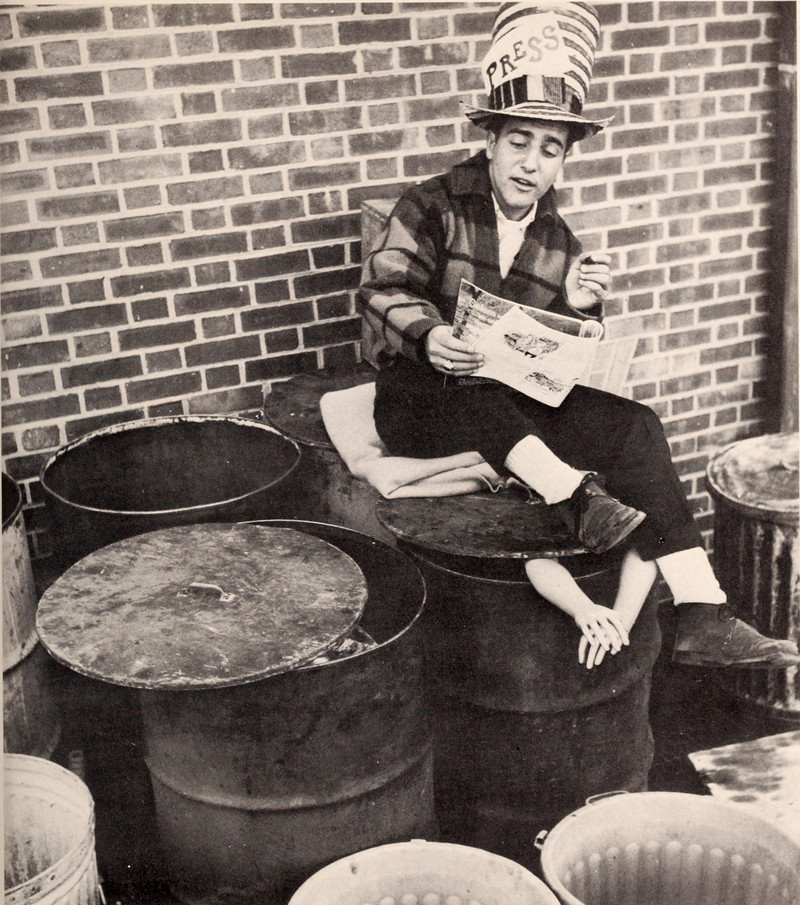 #vintage yearbook #costume #1960s #vintage man #smiling man #trash can #garbage #trashy costume