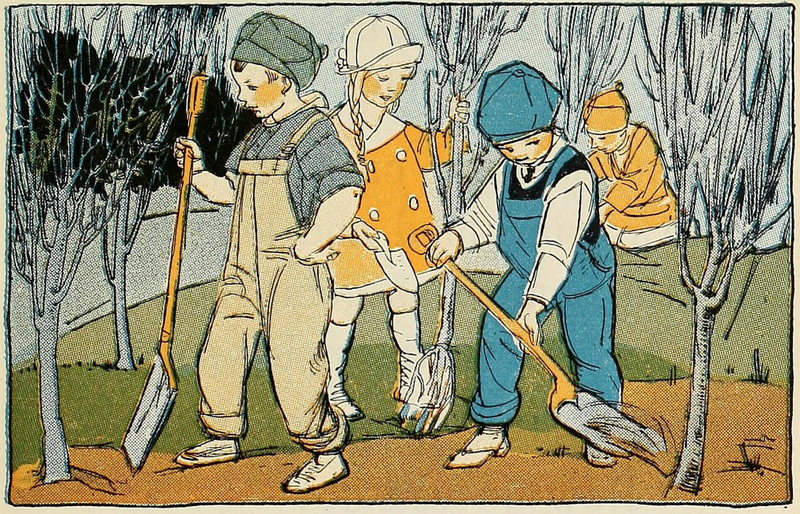 What we call "volunteer" plants are actually scattered by elves, as we learn in the Annual Program for the Observance of Arbor Day in the Schools of Rhode Island, 1901.