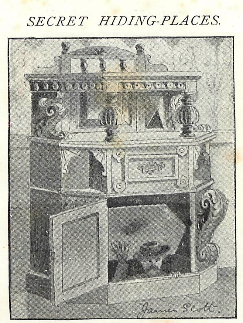 #vintage illustration #1890s #illustration #furniture #hiding place #trick furniture #trick cabinet