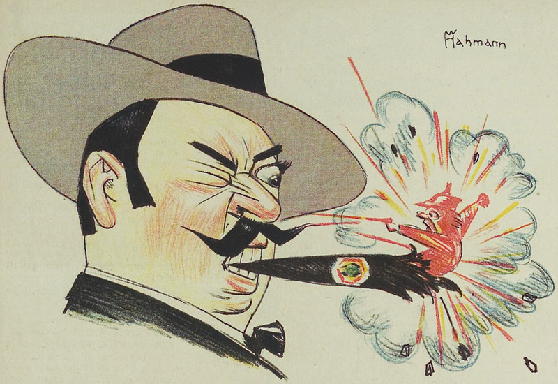 You've heard of exploding cigars, but here's how they work.  From Kladderadatsch, 1935.