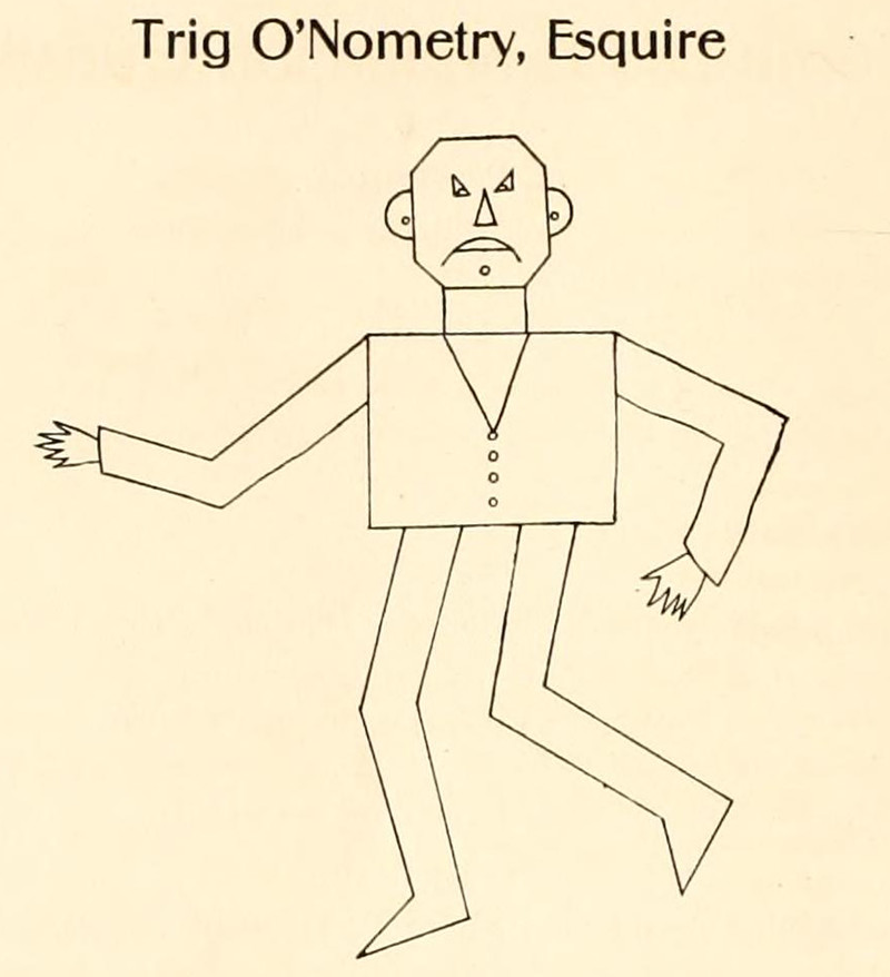 Trig O'Nometry, Esquire.  From Davenport's 1906 yearbook.  Impossible math problems with astonishing solutions: Presumptive Conundrums: Rhetorical Math Questions + Answers.